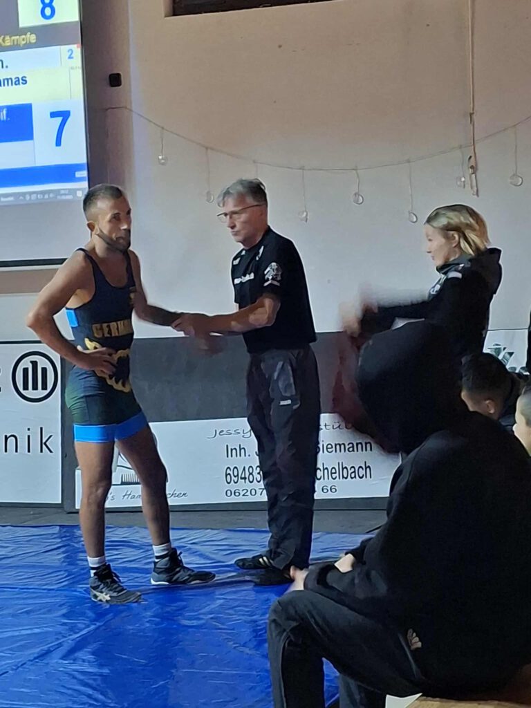 Der Ausfall von Anousch Gorzini am Vorabend schmerzte, aber das Team präsentierte sich in ausgezeichneter Verfassung und kam zu einem nie gefährdeten 30:4 Auswärtssieg bei der SVG Niederliebersbach. In den beiden Auftaktkämpfen hatten Abuzar Salar und Paolo di Gioia es mit zwei recht jungen Ringern der Heimmannschaft zu tun und konnten mühelos Schultersiege erringen. Im spannenden Duell bis 61 Greco konnte Andras Tamas seine Erfahrung ausspielen und souverän einen 11:0 Sieg landen. Clever war Mehdi Temara bis 98 kg unterwegs und ließ beim 2:0 Kurth keine Chance und mit Milads Ashuris kampflosen Sieg hieß es 0:19 zur Pause. Nach der Pause holte Gheorghe Fricatel seinen 5. Sieg im 5. Kampf und führt die Bestenliste mit an. Bis 71 kg startete Mujeb Ashuri und geriet mit 0:4 in Rückstand. Nach einer verletzungsbedingten Unterbrechung fand sein Gegner nicht mehr zurück in den Kampf, so dass Mujeb noch mit 9:4 gewinnen konnte. Usman Dzeitov ersetzte bis 80 kg Freistil Anousch und machte seine Sache gegen Merlin Eckert gut, konnte aber die Schulterniederlage nicht verhindern. In den beiden Leichtgewichtsklassen bis 75 kg erzielten Vasile Musat und Mohamed Alsibai jeweils technische Überlegenheitssiege zum Gesamtsieg. Bemerkenswert war auch, dass die gut leitende Denisa Ghenescu. Am kommenden Samstag gastiert die Bundesligareserve in der ASV Halle und es sind interessante Paarungen zu erwarten. Kampfbeginn 20 Uhr, davor Vorkämpfe der Zweiten 18:30 Uhr und Schüler 17:00 Uhr.
