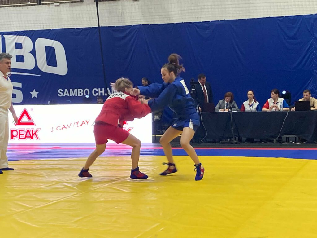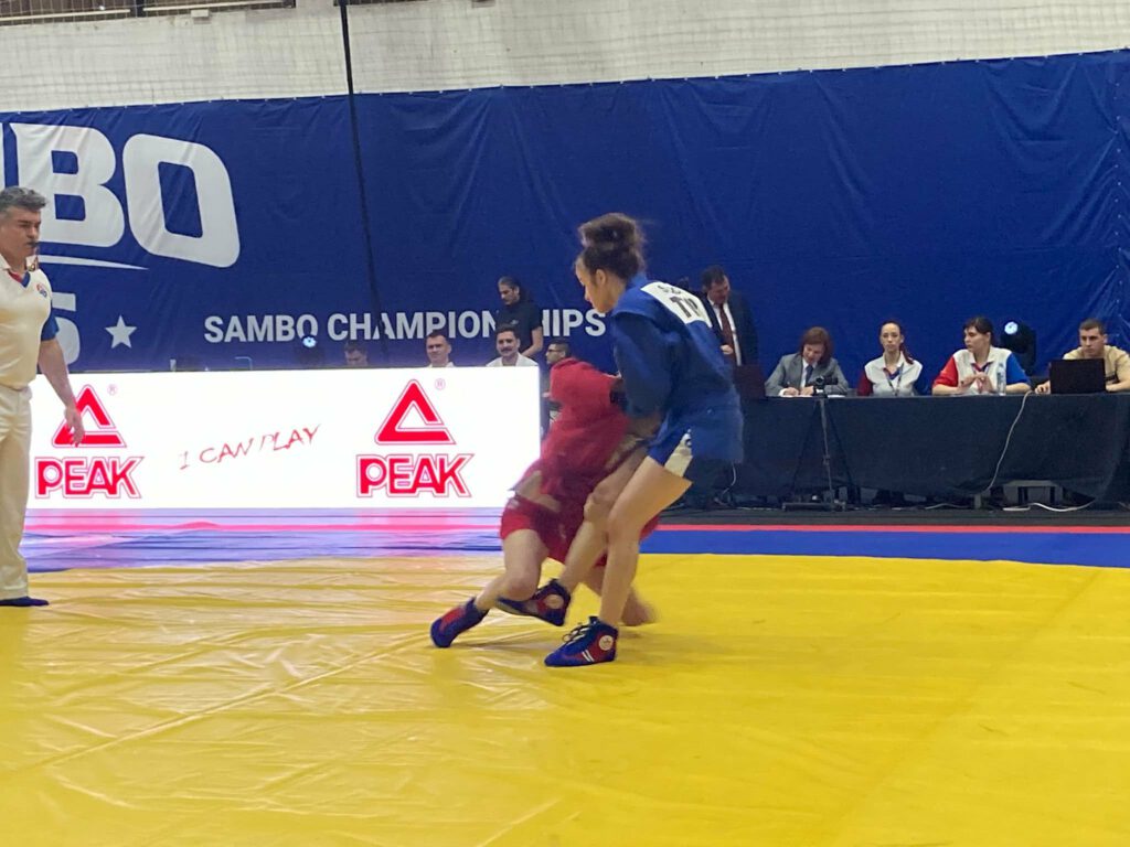 Sambo ist eine Mischung aus Judo und Ringen und die Kämpfe gehen ohne Pause über 4 Minuten (Jugend) und 5 Minuten (Junioren). Für Würfe gibt es zwischen 1 und 5 Punkte je nach Ausführung. Für einen 20 sekündigen Haltegriffe kann man weitere 4 Zähler erhalten. Außerdem sind Arm- und Beinhebelgriffe erlaubt. Unsere Praktikantin und Vereinsmitglied Josefine “Josi” Widmann durfte als 2008 in beiden Wettbewerben antreten und startete für den Budo-Club Karlsruhe.