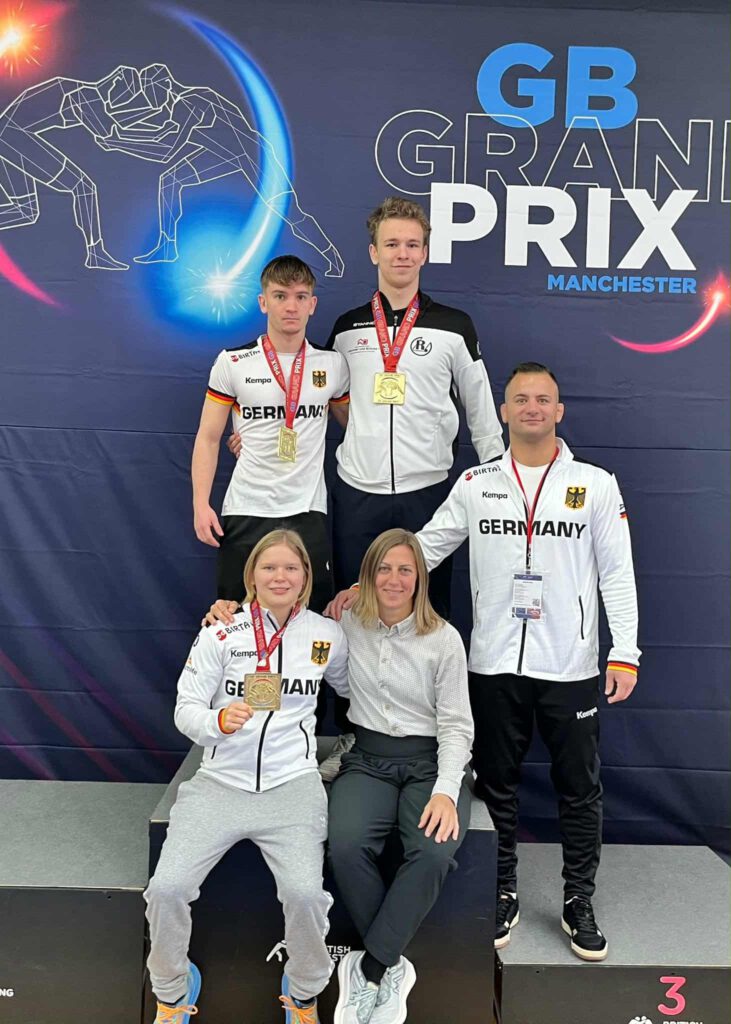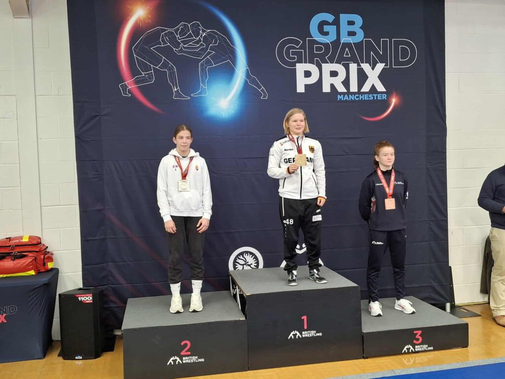 Beim internationalen Freistilturnier der U17 & U20 in Manchester konnte unsere Josi Widmann, die derzeit am OSP Freiburg trainiert und für den AC Ückerath startet nach 4 Siegen erstmals bei einem UWW Turnier Gold gewinnen. Zum Auftakt gewann sie sicher gegen die Ungarin Kata Pusztai, zweimalige EM-Teilnehmerin und Bronzegewinnerin 2023 nach Punkten. Danach verloren die Nordirin Naoise McManus, sowie die Briten Mia Kipling und Robyn Coles vorzeitig und so stand der Sieg bei 30:0 technischen Wertungen bei ihrem letzten U17 Turnier fest. Wir sind gespannt, wie es in der nächsthöheren Altersklasse weitergeht
